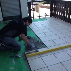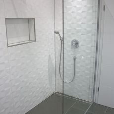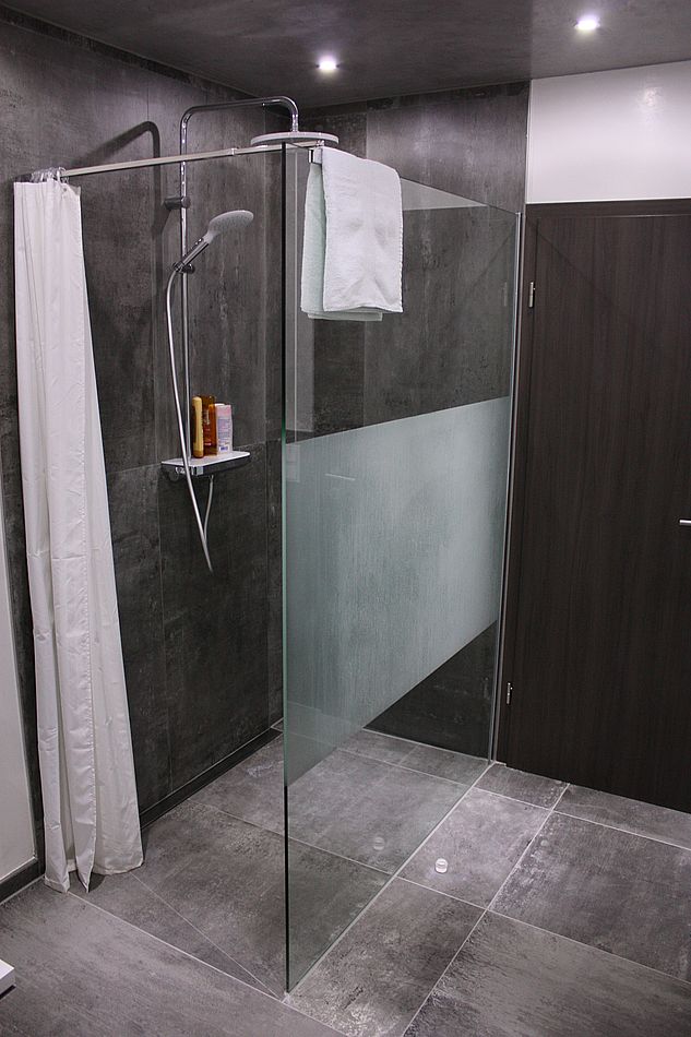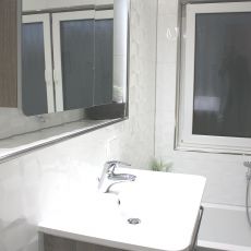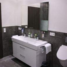 Hier ein Beispiel bei dem wir in den Bädern und im Gäste-WC Fliesen im XXL-Format verlegt haben. Das erste Bad dieses Objektes können Sie auf der Startseite in 360 Grad Ansicht erkunden.