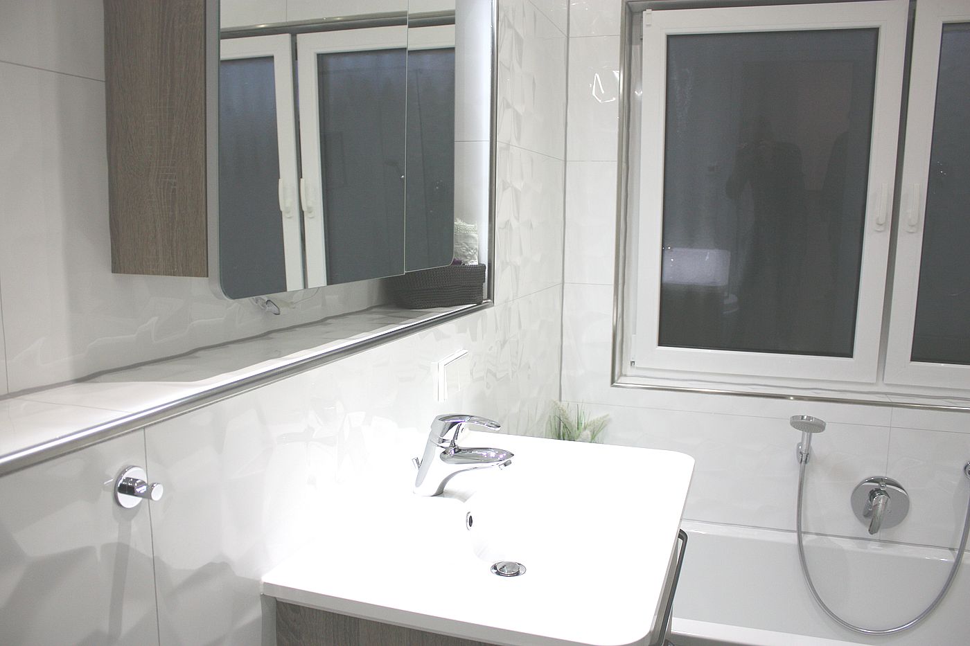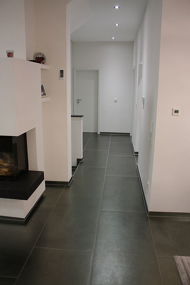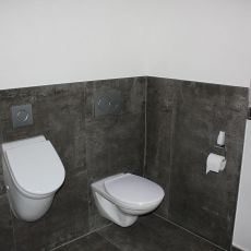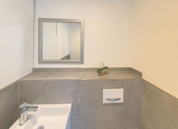 Hier ein Beispiel bei dem wir in den Bädern und im Gäste-WC Fliesen im XXL-Format verlegt haben. Das erste Bad dieses Objektes können Sie auf der Startseite in 360 Grad Ansicht erkunden.
